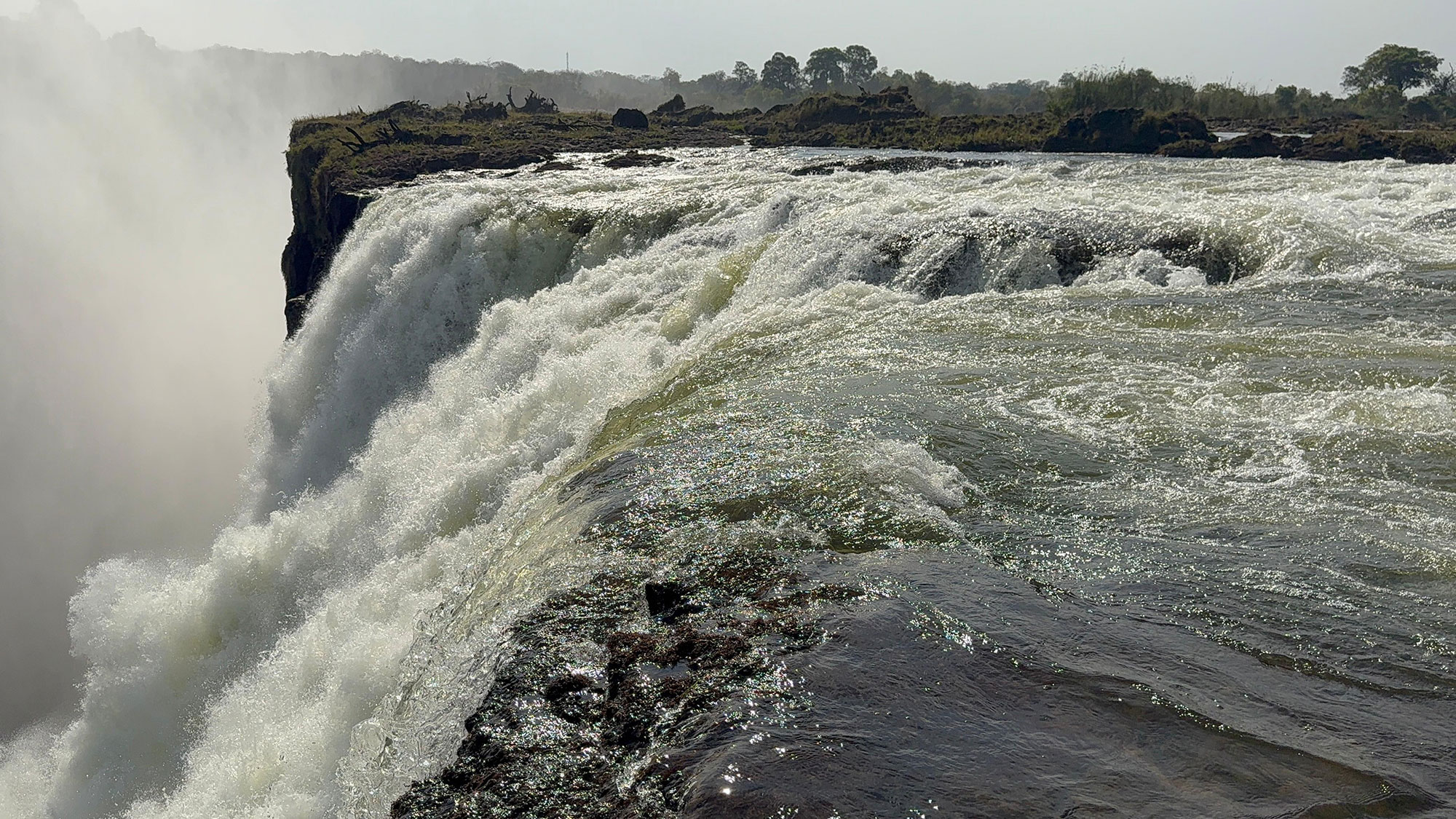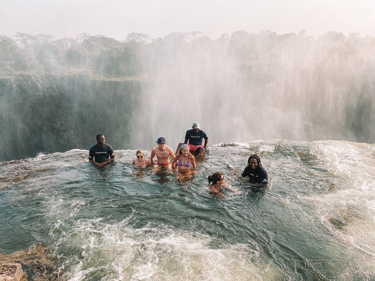 The journey begins with a boat ride across the Zambezi River, followed by a short guided walk and swim through calm channels to reach the natural infinity pool. A rock barrier at the edge allows you to peer over into the breathtaking Batoka Gorge below.